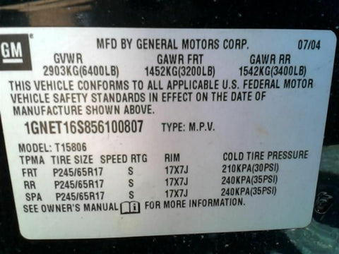 ISUZU ASCENDER 04-05 7 Passenger (3rd row seat), 3.42 ratio GU6