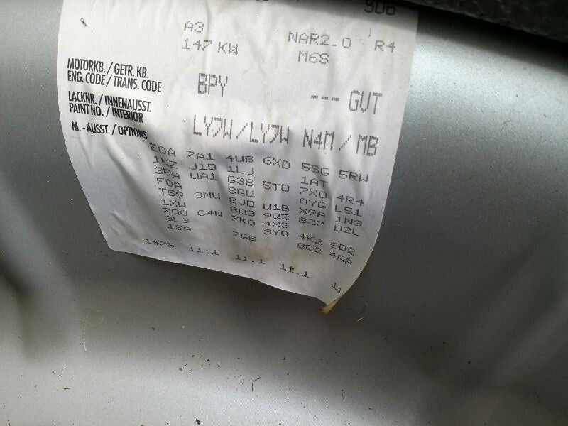 AUDI A3 06 Assembly; thru VIN 004458