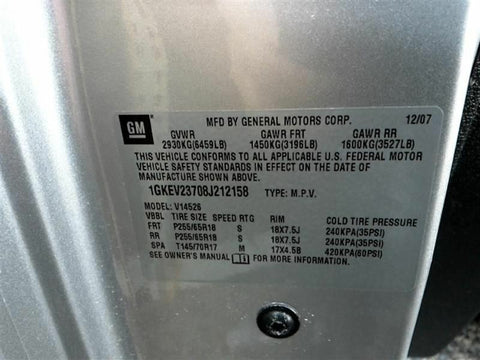 ACADIA 08 w/variable assist power steering (opt NV7), valve ID 25829828