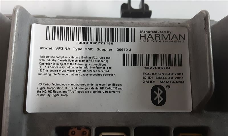 CHEROKEE 17 display and receiver, 8.4" screen, w/navigation, (AM-FM-HD-Navigation-Uconnect-Bluetooth), w/telematics (Uconnect Access)
