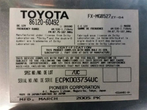 LEXUS GX470 05-06 receiver (Pioneer audio system), w/o electro multi-vison and navigation; (2 DIN size), ID 86120-60492