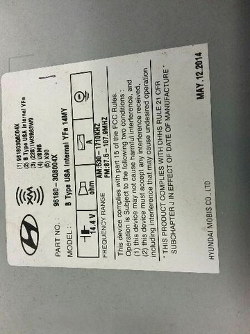 SONATA 14 w/hybrid option, receiver assembly, w/o navigation; (AM-FM-stereo-CD-MP3-satellilte), US market, ID 961803Q800