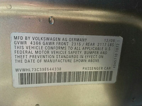 PASSAT 09 Electronic Control Module; 2.0L, (engine ID CCTA), AT