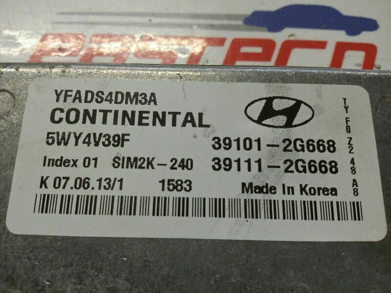 SONATA 14 Electronic Control Module; (LH under hood), 2.4L (AT), VIN C (8th digit), California emissions (PZEV), ID 391112G669
