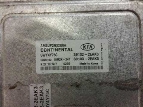 SOUL 12 Electronic Control Module; (US market, LH engine compartment), 2.0L, AT, conventional ignition, w/o automatic engine stop and start; ID 391032EAJ3