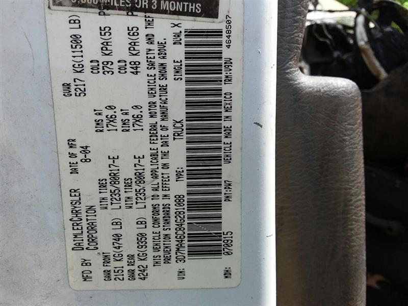 DODGE 3500 PICKUP 03-05 4x4; Regular Cab (2 Dr)
