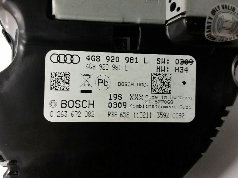 AUDI A7 12-13 (cluster), MPH, w/o adaptive cruise; w/o night vision; ID 4G8920981QX