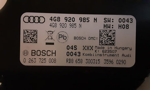 AUDI A7 17 (cluster), MPH, w/adaptive cruise (opt 8T4), w/o night vision; ID 4G8920987B
