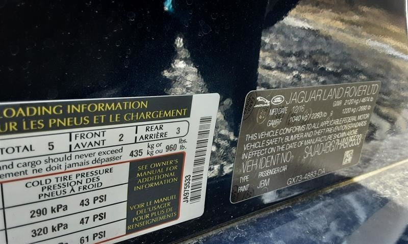 XE 17 front, RWD, w/o sport suspension; (2.0L), gasoline