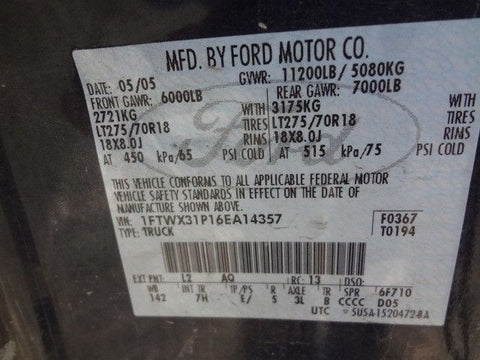 FORD F350SD PICKUP 05-07 Rear; exc. Chassis Cab; SRW, 4x4, 142" WB