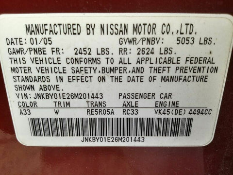 INFINITI FX SERIES 06 4.5L (8 cylinder), thru 3/06